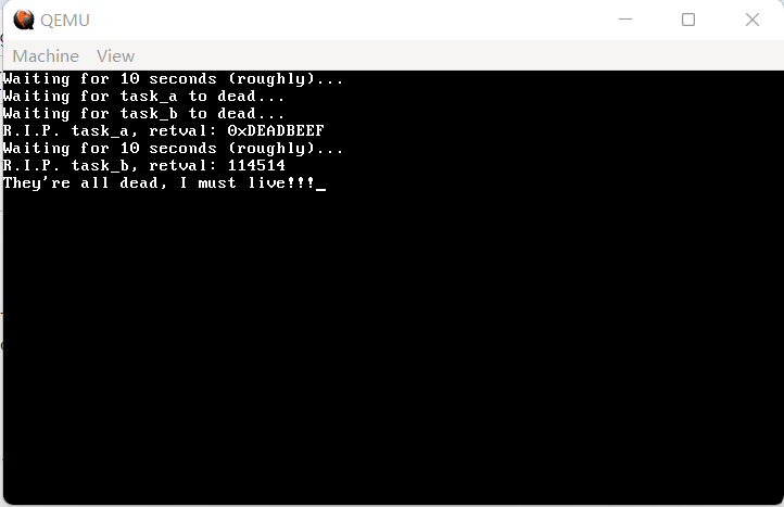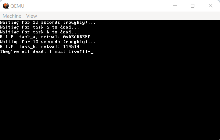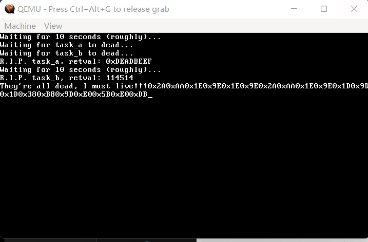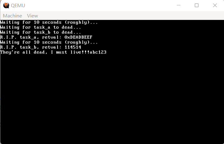 好了,现在编译运行,等待 task_c 输出完成后,输入 abc123,效果如下: