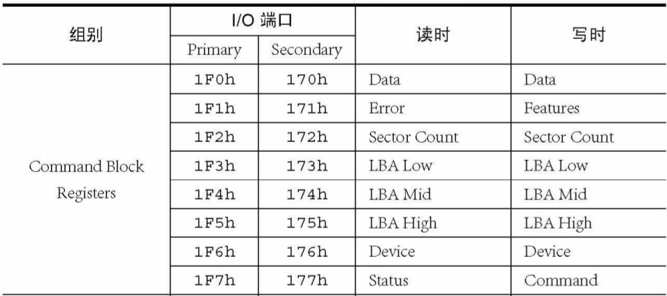 即使是走捷径,硬盘的端口操作仍然多且杂,具体可见下表(仍旧来自《Orange'S:一个操作系统的实现》):