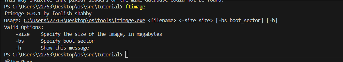 如果在命令行输入 ftimage 后,输出如上图所示(或类似),则说明这几个程序配置相当成功;否则,请检查是否把这几个程序放在了正确的地方。