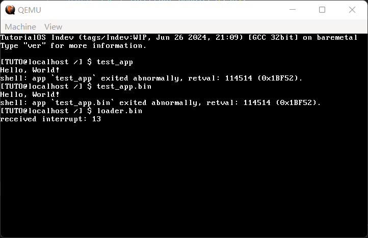 这里先用了 ar,把我们的“标准库”——stdio.o(printf,sprintf,vprintf,vsprintf)、string.o(mem 系列和 str 系列)以及 syscall_impl.o(系统调用的实现部分)打成了一个库 tulibc.a,取 TUtorialos LIBC 的意思。libc 则是一种描述标准库的通用简写。然后,分别编译 start.c 和应用程序,最后把应用程序本体、start.o 和 tulibc.a 链接在一起,并设定入口点,形成可以让 TutorialOS 执行的应用程序。