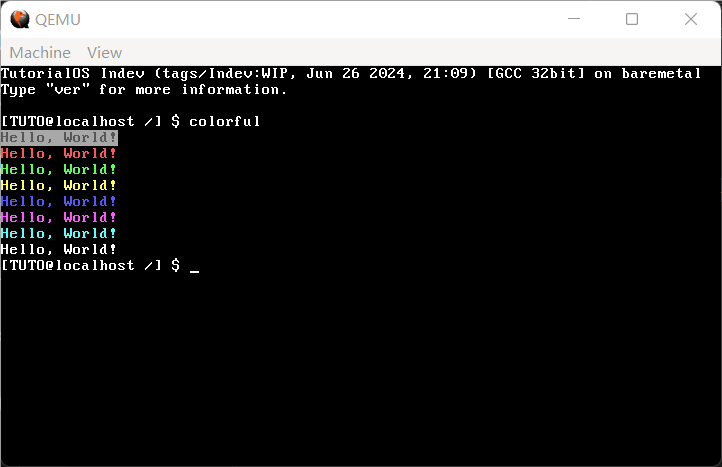 至此,可以说 ANSI 转义序列我们已经完全实现。下一节我们来给残破的 FAT16 文件系统添加目录,把它变得更加丰富一些。